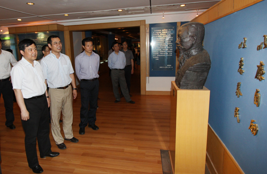 时任浙江省省长吕祖善(左一)视察Z6尊龙 时任浙江省省长柴松岳(左三)和 柴松岳题词