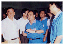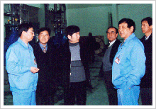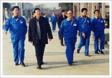 时任国务院副总理吴邦国(右二)视察Z6尊龙并题词 时任浙江省委书记张德江(右一)视察Z6尊龙