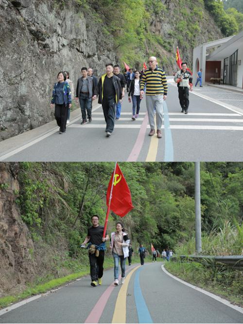 当天下午,活动进入参观学习环节,两家党委统一前往王村口古镇,现场参观中国工农红军挺进师纪念馆,缅怀革命先烈,追寻红色记忆。在重走红军路活动中,大家追忆刘英、粟裕革命精神,重温浙西南红色革命足迹,切身感悟浙西南革命精神的深刻内涵。